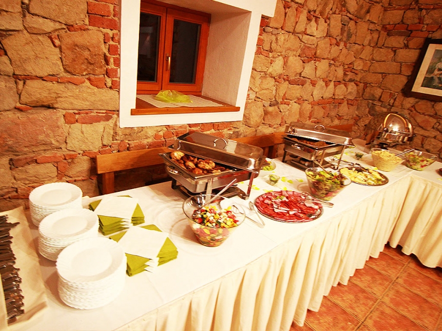 Po dohodě lze zajistit občerstvení např. formou rautu, ochutnávku místních vín nebo vystoupení živé cimbálové kapely.