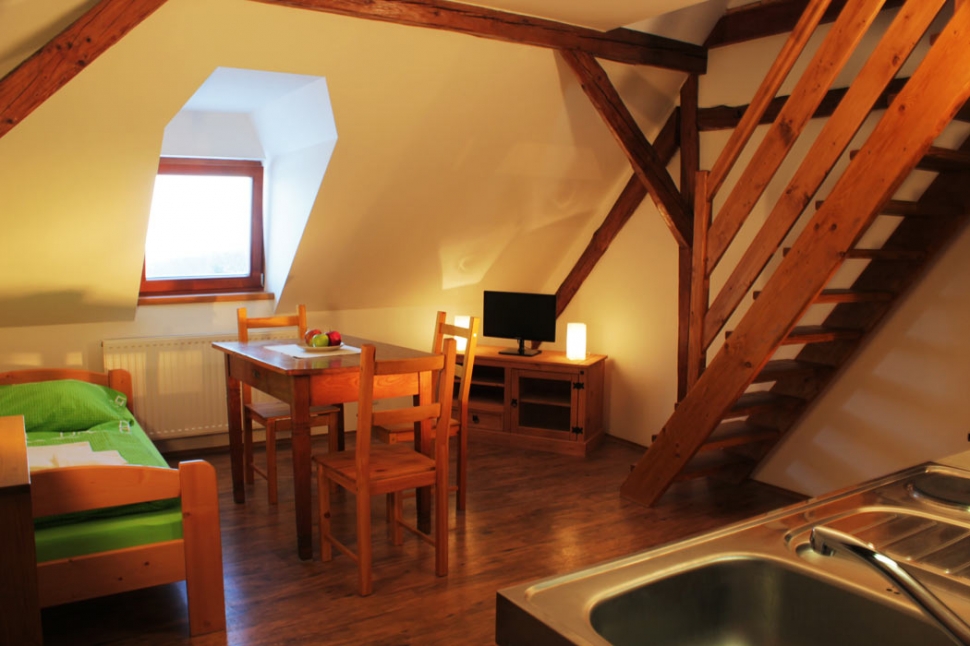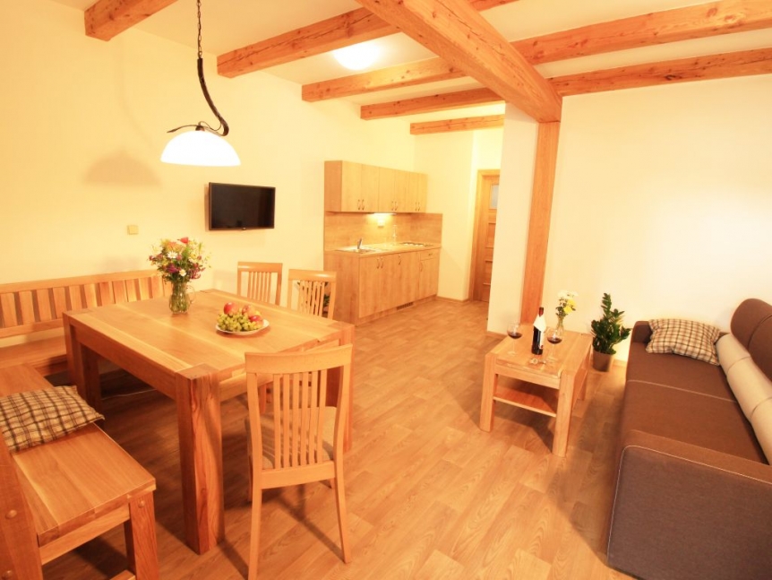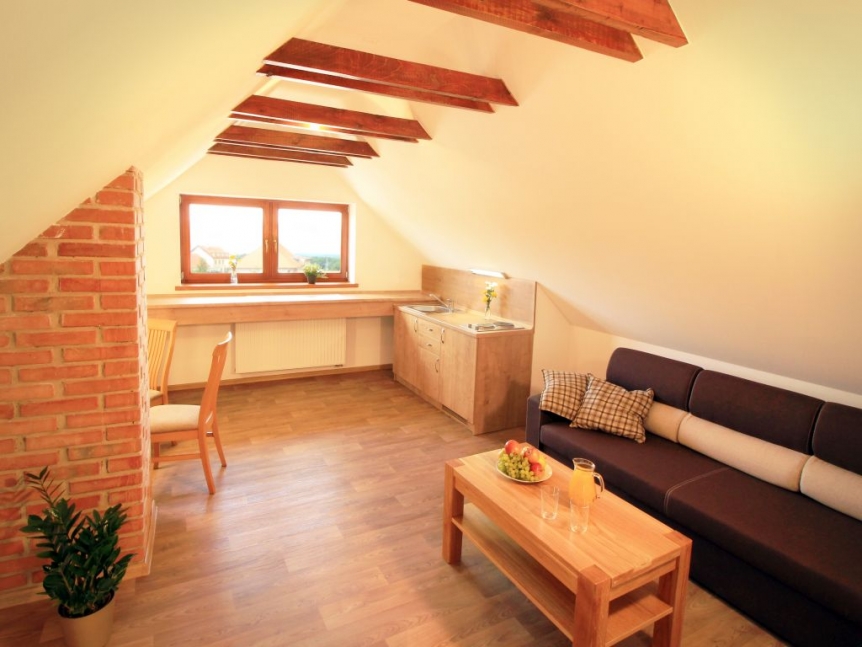 Přemýšlíte o letní rodinné dovolené v srdci Jižní Moravy a hledáte ubytování, které vám nabídne nejen dostatek prostoru, ale i přátelskou atmosféru? A přitom za rozumnou cenu? Ubytování v apartmánech v penzionu Buchlovský dvůr je v tom případě pro vás to pravé! Buchlovský dvůr nabízí ubytování v přírodě, jen pár kilometrů od města Buchlovice, v nádherném prostředí Jižní Moravy. Vybavení apartmánů je kvalitní, vkusné a funkční a pro strávení rodinné dovolené nabízí všechno, co je potřeba. Apartmány v penzionu Buchlovský dvůr se skládají z ložnice, samotného sociálního zařízení a obývací části s kuchyňským koutem.
