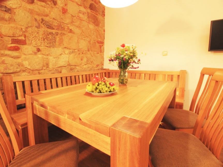 Pro hosty penzionu je připravena velká společenská místnost v rustikálním stylu. Příjemné posezení znásobí atraktivita historických kamenných zdí.